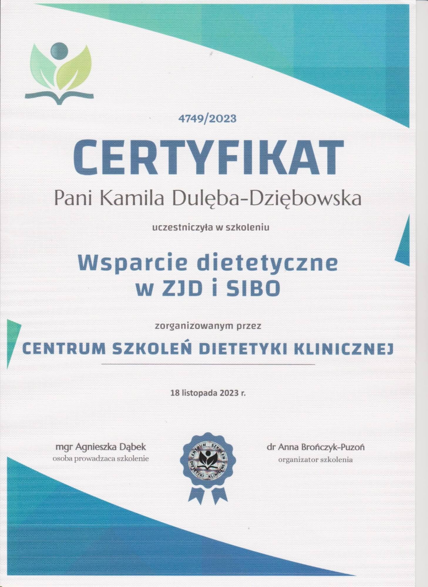 Szkolenie: „Wsparcie dietetyczne w ZJD i SIBO” Centrum Szkoleń Dietetyki Klinicznej
